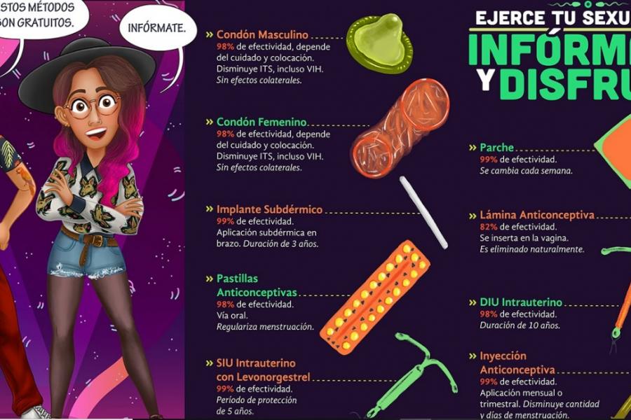 Desde Injuve (Instituto de la Juventud de Ciudad de México) recuerdan que en CDMX hay métodos anticonceptivos a los que pueden acceder todos los jóvenes como el condón masculino, el condón femenino, la píldora anticonceptiva, el DIU intrauterino, el parche anticonceptivo o algunos menos conocidos como la lámina anticonceptiva que se inserta en la vagina y se elimina de manera natural.